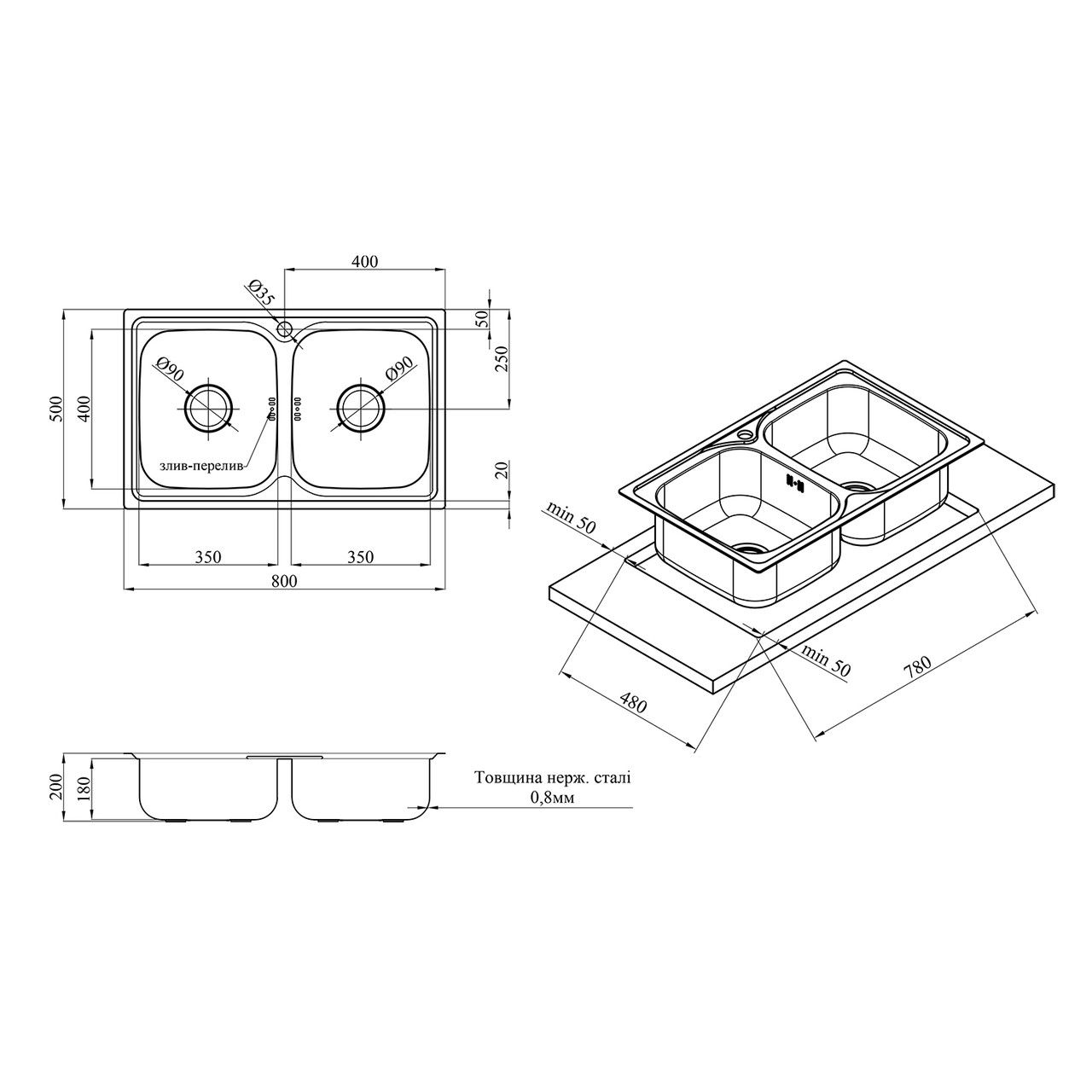 Кухонна мийка Kroner KRP Satin — 7948Z (0.8 мм)