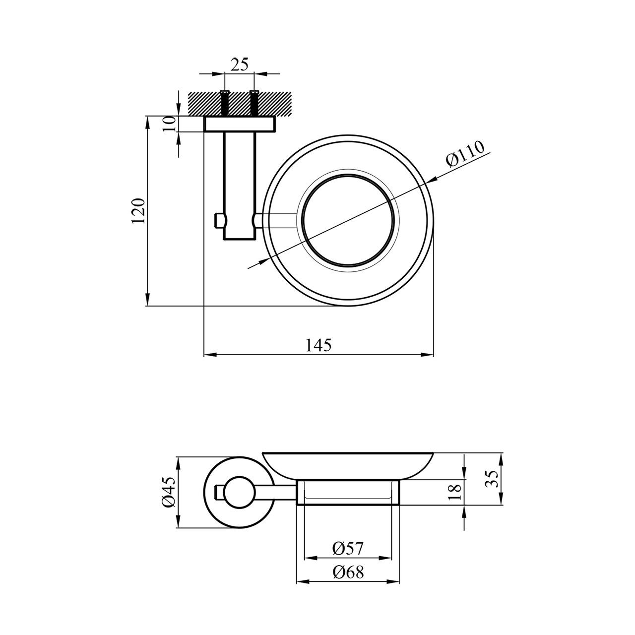 Мильниця Kroner (KRP) Edelstahl Klassisch-ESG3702 міцно кріпиться до стіни, містить тримач і скляну чашу. Виріб виготовлений із якісного та довговічного металу. Мильниця знімна, завдяки чому догляд за нею буде простим і легким. У виробі використовуються ущільнювальне кільце (прокладка), необхідне для щільного з'єднання металу та скла, що також перешкоджають виникненню шуму внаслідок зіткнення частин виробу. На тримач нанесений фірмовий логотип компанії.