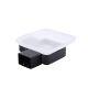Мильниця Kroner (KRP) Edelstahl Kubus-SCH3902 міцно кріпиться до стіни, містить тримач і скляну чашу. Виріб виготовлений із якісного та довговічного металу з чорним матовим покриттям. Мильниця знімна, завдяки чому догляд за нею буде простим і легким. У виробі використовуються ущільнювальне кільце (прокладка), необхідне для щільного з'єднання металу та скла, що також перешкоджають виникненню шуму внаслідок зіткнення частин виробу. На тримач нанесений фірмовий логотип компанії.