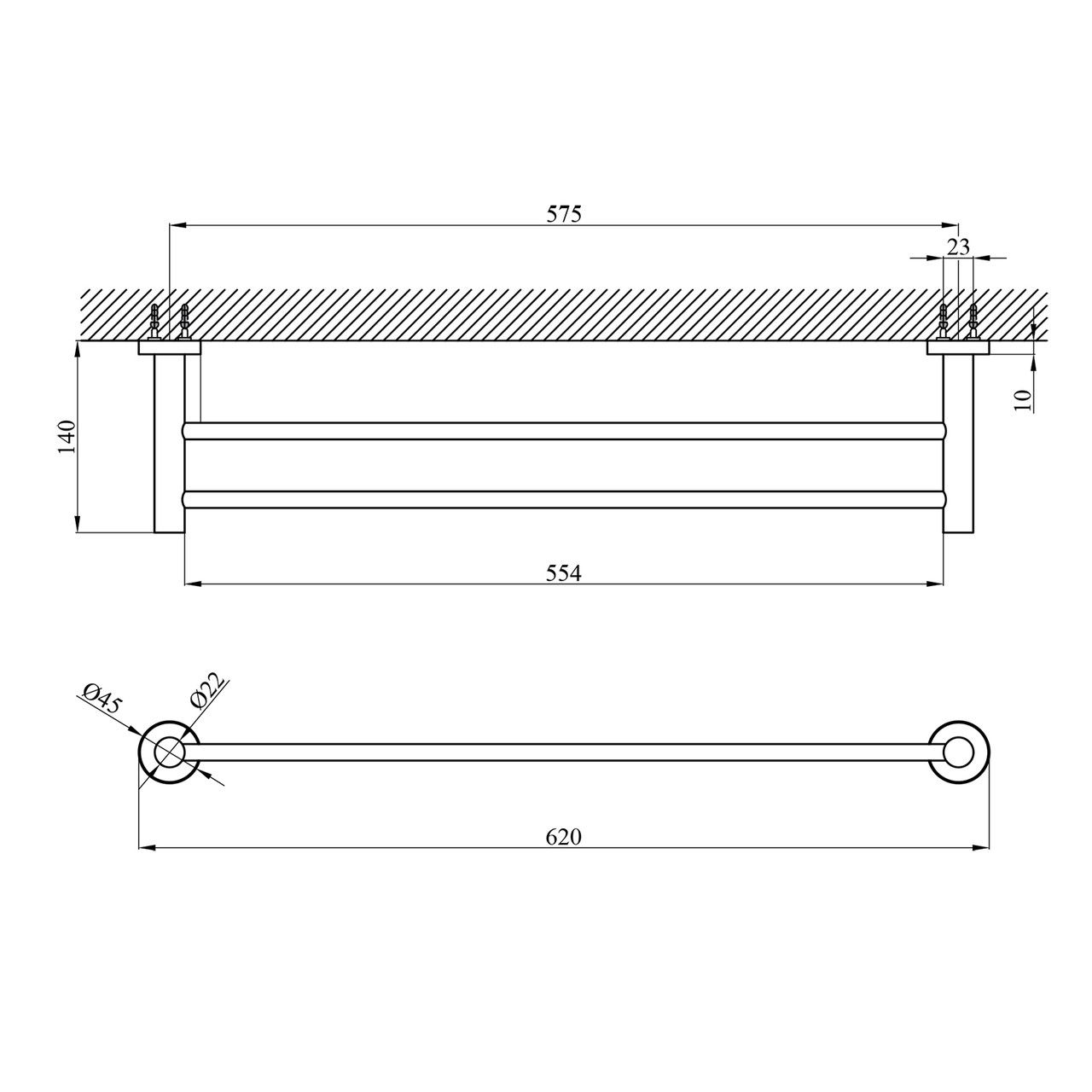 Розміри виробу (ВхШхГ), мм45х620х140