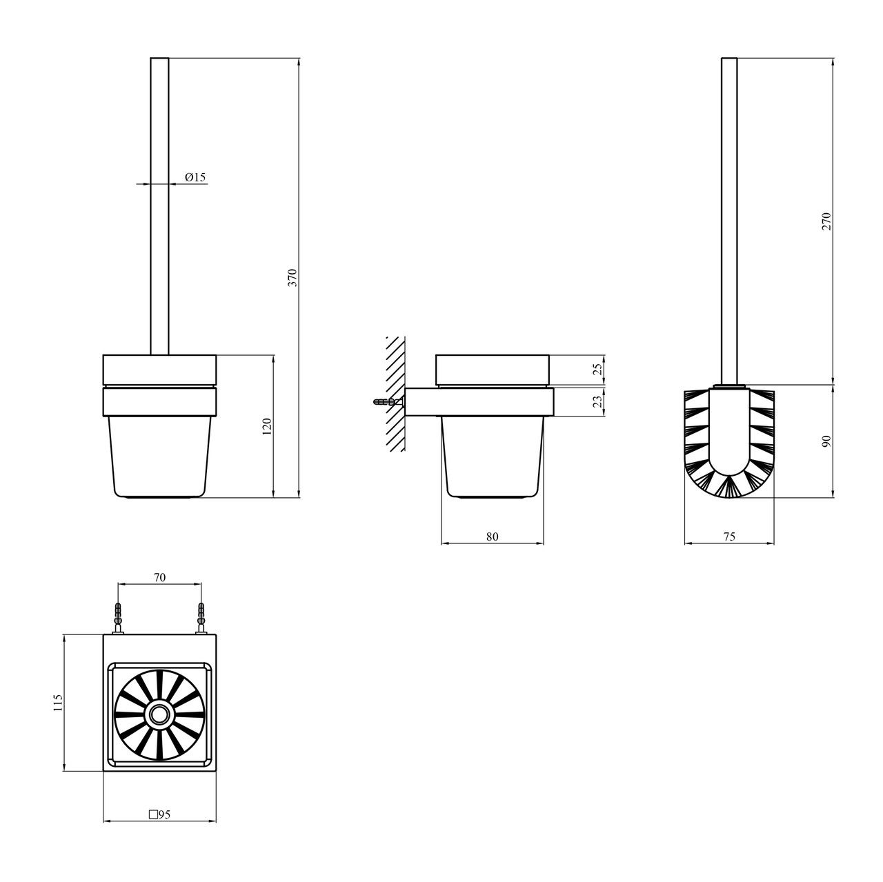 Єршик для унітазу настінний Kroner KRP Edelstahl Kubus — SCH3910