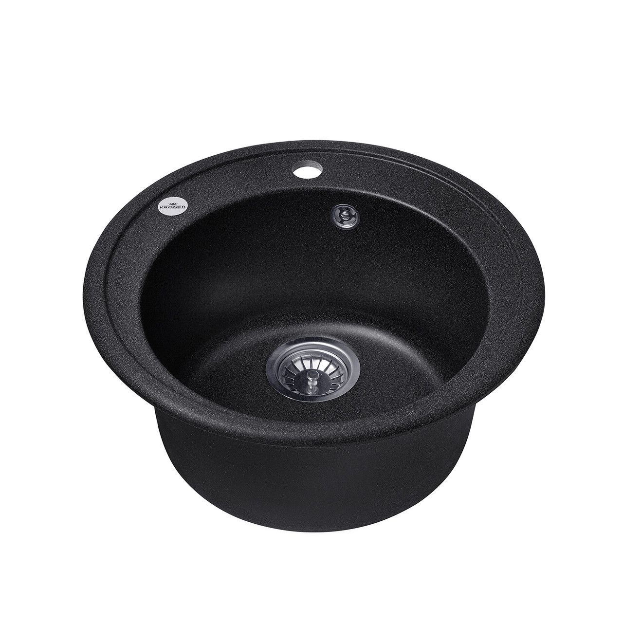 Кухонна мийка Kroner KRP Komposit GRB — 510 — ідеальне поєднання стилю та функціональності для вашої кухні. Завдяки врізному монтажу вона прекрасно вписується в робочий простір. Виготовлена з високоякісного штучного каменю, мийка гарантує довгий термін експлуатації та стійкість до подряпин і ударів. Графітовий колір надає стильності та сучасності, а кругла форма має досить елегантний вигляд. Матова поверхня забезпечує зменшення відблисків. Забудьте про турботи з мийкою від Kroner.