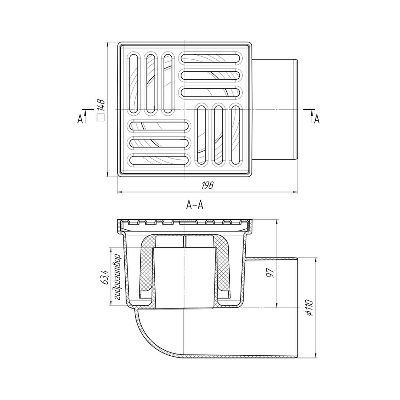 Трап ANIplast з горизонтальним випуском 110 мм, з решіткою 15х15 см TA1112EU