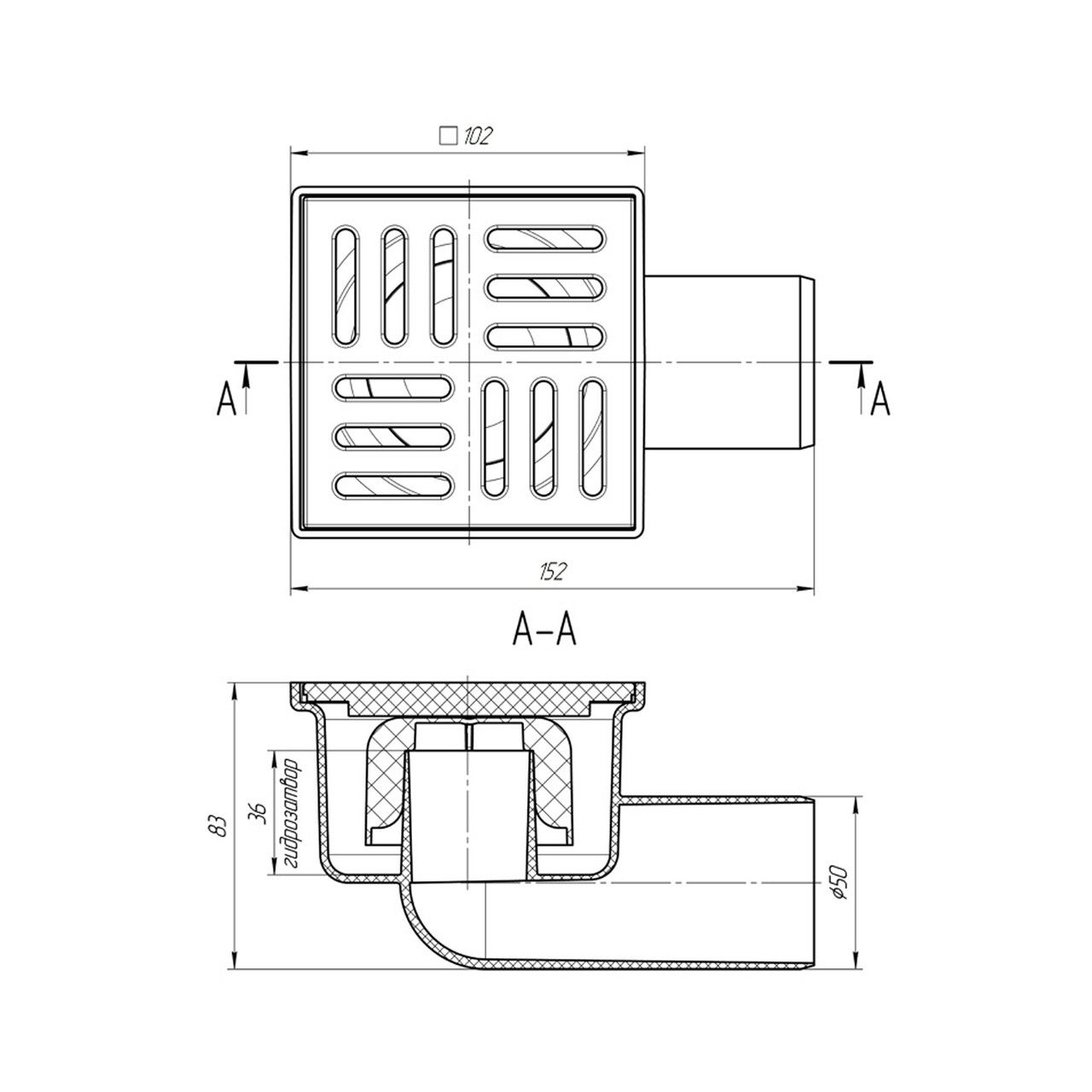 Трап ANIplast з горизонтальним випуском 50 мм, з решіткою 10х10 см TA5104EU