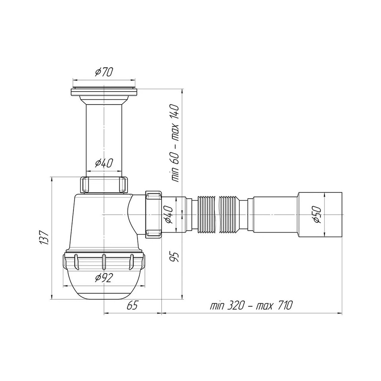 Діаметр труби до каналізації, мм40/50