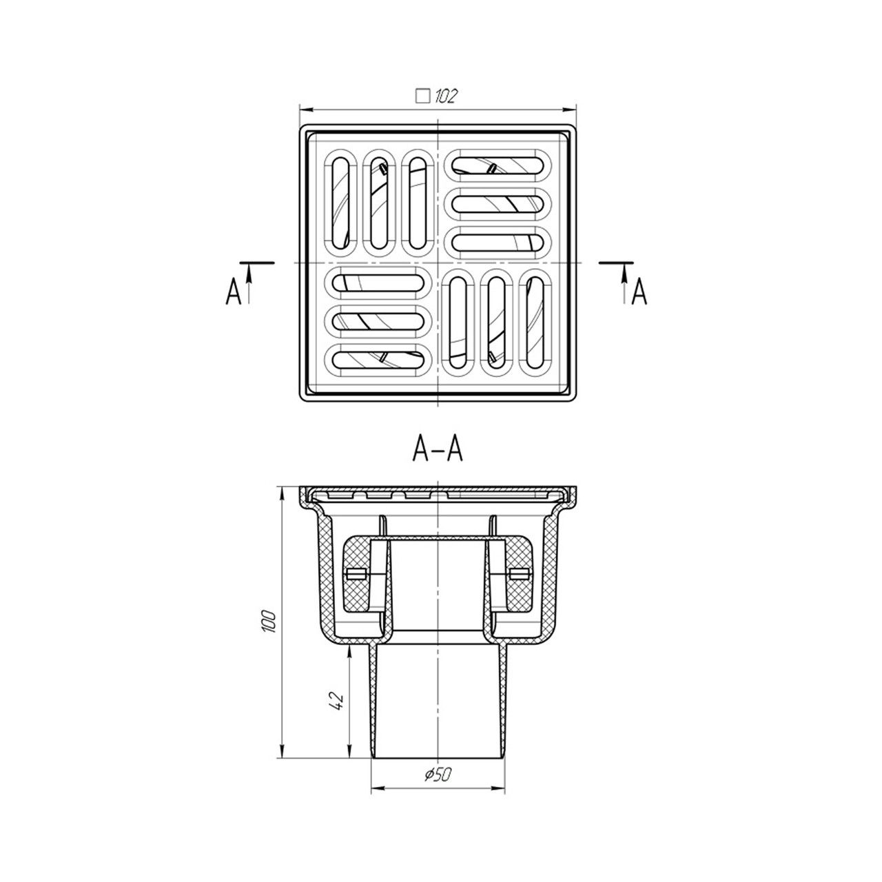 Трап ANIplast з вертикальним випуском 50 мм, з неіржавкою решіткою 10х10 см TA5202EU