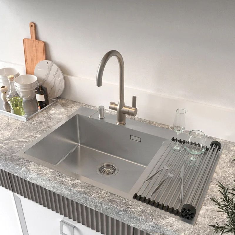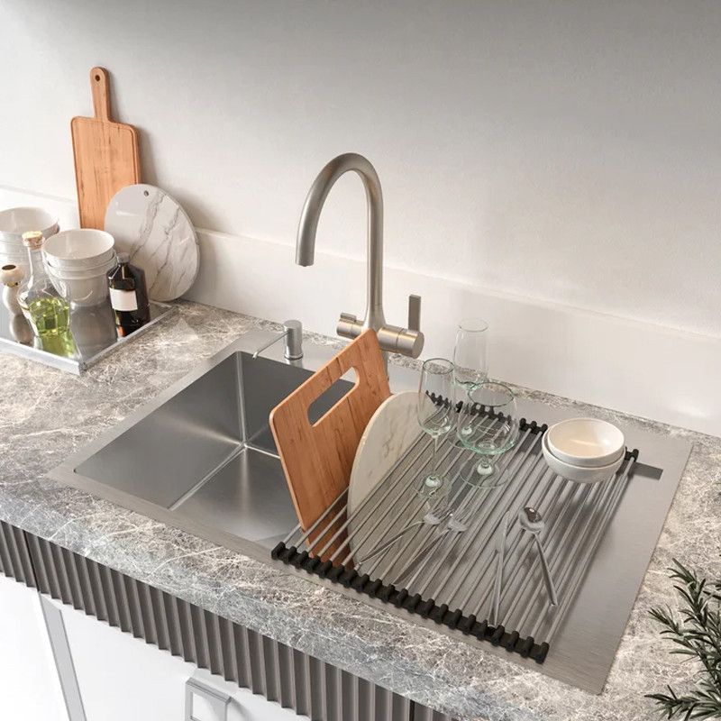 Сушарка-килимок для посуду Kroner KRP Matte-SCH4333-2 виготовлена з харчового силікону та неіржавкої сталі. Сушіння такого типу називається трофлексом, встановлюється поверх мийки або на стільницю. Важливою перевагою цього типу сушіння є те, що вона завжди під рукою й на неї можна складати не тільки посуд, але, наприклад, і миті овочі, а також можливо використовувати для розміщення гарячих каструль і сковорідок. Сушарка скочується в рулон і не займає багато місця, а за потреби швидко розкладається для сушіння посуду або овочів.
