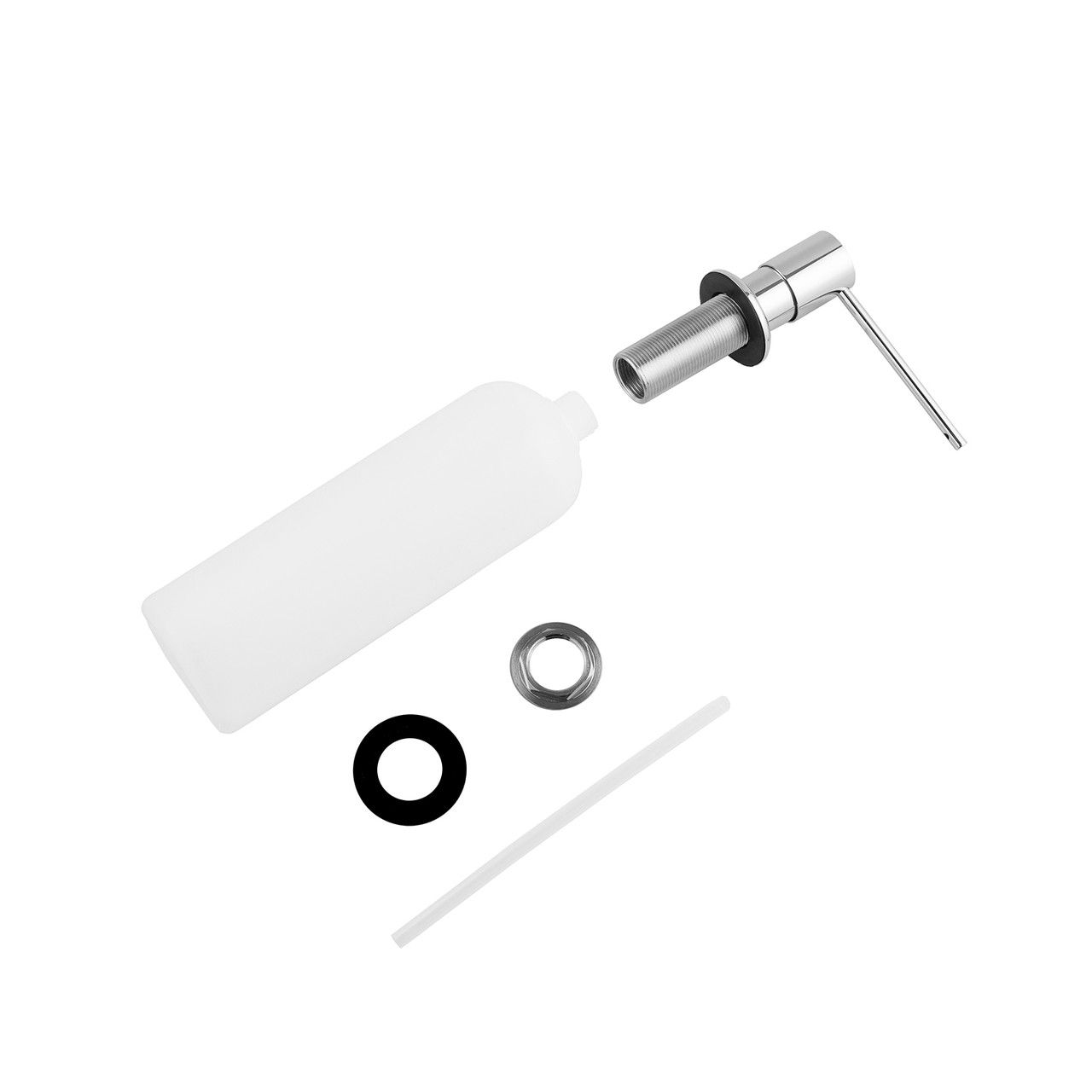 Вбудований дозатор Kroner KRP Spender-C001 стане універсальною родзинкою в інтер'єрі сучасної кухні або ванної кімнати. Диспенсер — це незамінний аксесуар, який виконує кілька функцій. По-перше, економія витрати мийного засобу або рідкого мила. По-друге, позбавляє візуального шуму. Під час монтажу вбудований аксесуар фіксують у отворі стільниці або мийки в такий спосіб, щоб пластикова ємність була прихована всередині, що надає простору акуратного вигляду. Завдяки прозорим стінкам зручно контролювати витрату мийного засобу. Він складається з пластикової ємності 500 мл і помпи — з високоякісної латуні з хромованим покриттям, яке її герметично закриває. Обладнаний системою подавання мийного засобу з додатковим каналом, що запобігає контакту рідини з латунними деталями. Аксесуар має підвищену міцність, стійкий до агресивного впливу зовнішнього середовища та розрахований на тривалу експлуатацію. Максимальна товщина стільниці 50 мм. Діаметр отвору для встановлення 25 мм.