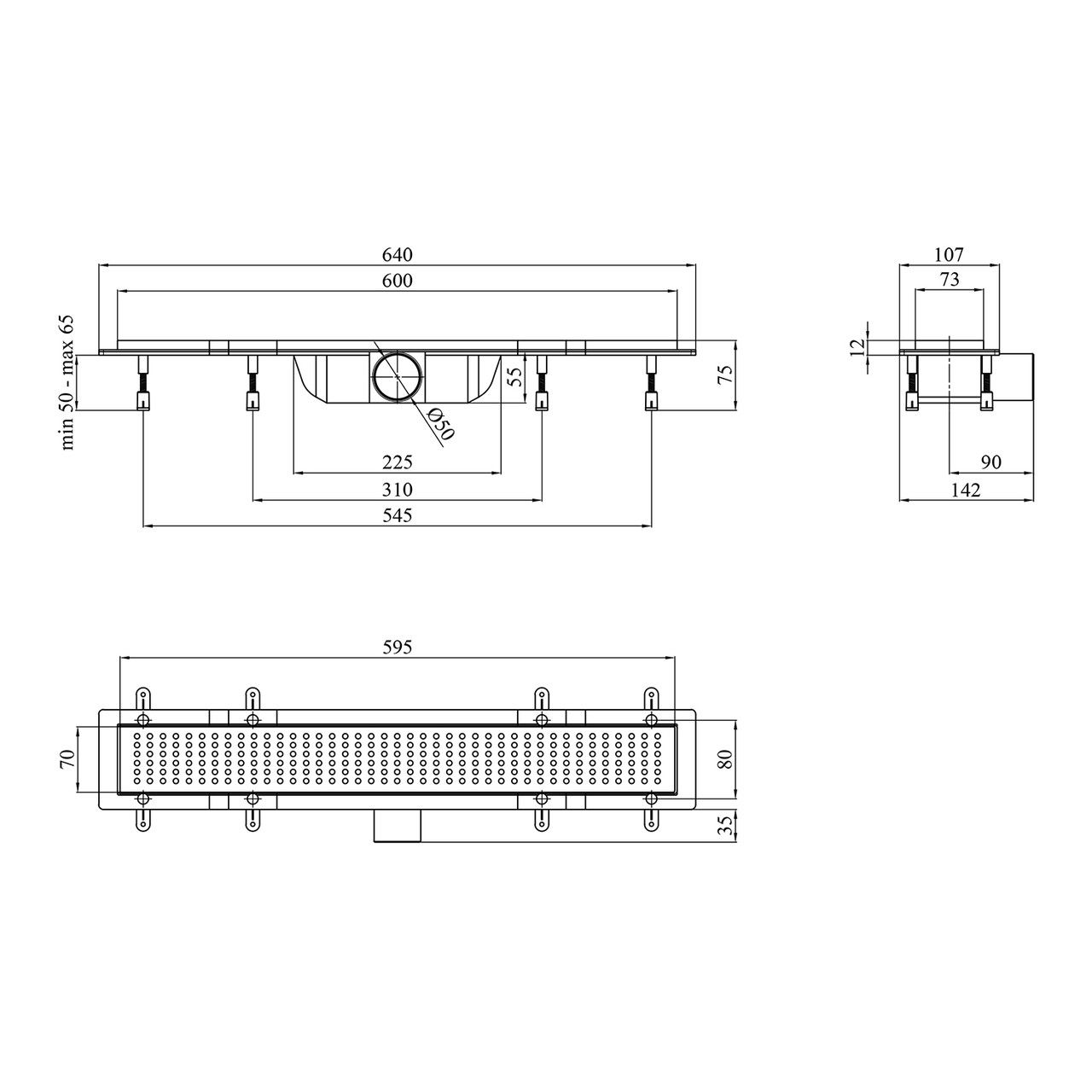 Розмір решітки, мм600x73