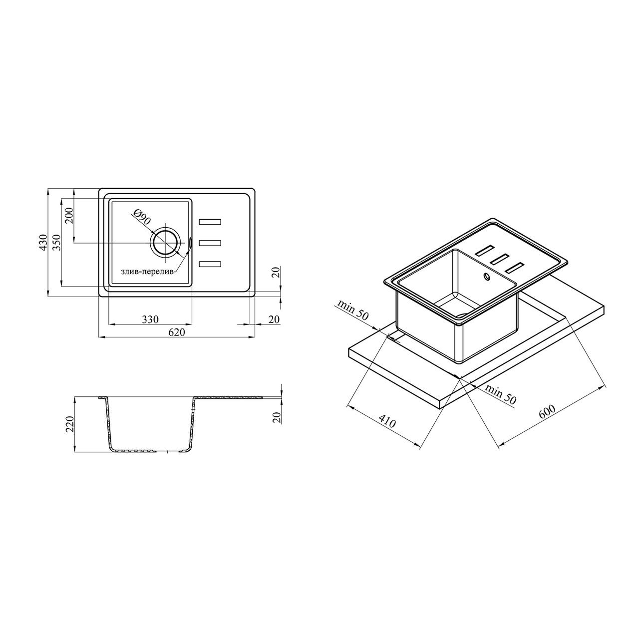 Розмір чаші 1 (ШхГхВ), мм330х350х220