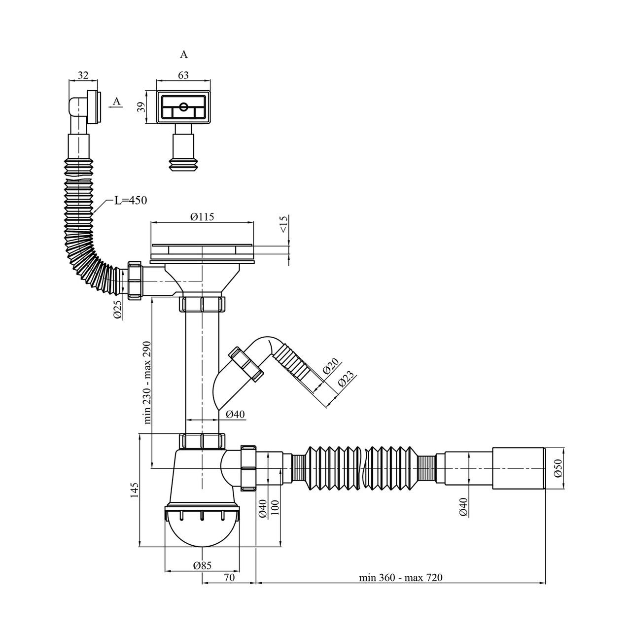 Робочий діапазон температур: Сифон спроєктований для надійної роботи в широкому діапазоні температур від 0 до +95 °C, що забезпечує стабільну продуктивність у різноманітних умовах.