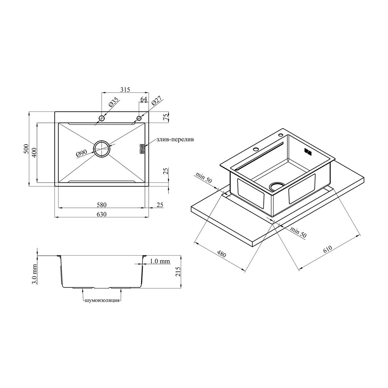 Шумоізоляція й антиконденсат: Мийка повністю покрита шумоізоляцією й антиконденсатом, що знижує шум під час використання та запобігає утворенню конденсату.