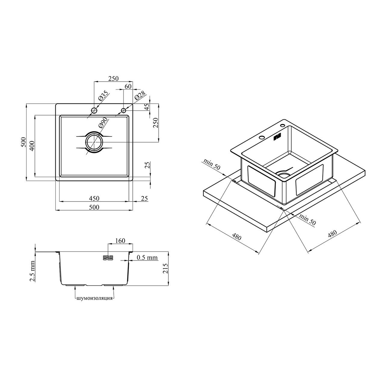 Додаткові функціїНержавіюча сталь SUS 201. Є отвір для дозатора миючого засобу.