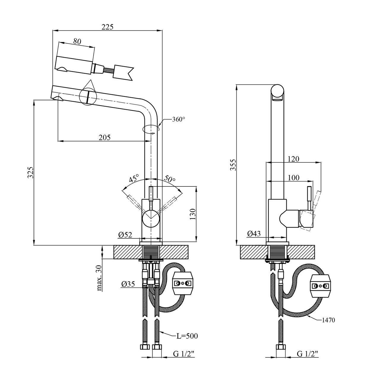 Змішувач для кухні з висувним виливом Kroner KRP Edelstahl Klassisch — ESG03917 являє собою стильне та функціональне рішення для вашої кухні.