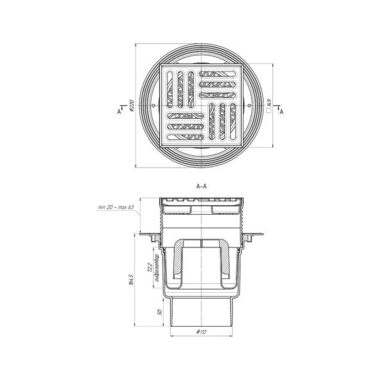 Трап ANIplast з вертикальним випуском 110 мм, з неіржавкою решіткою 15х15 см TA1712EU
