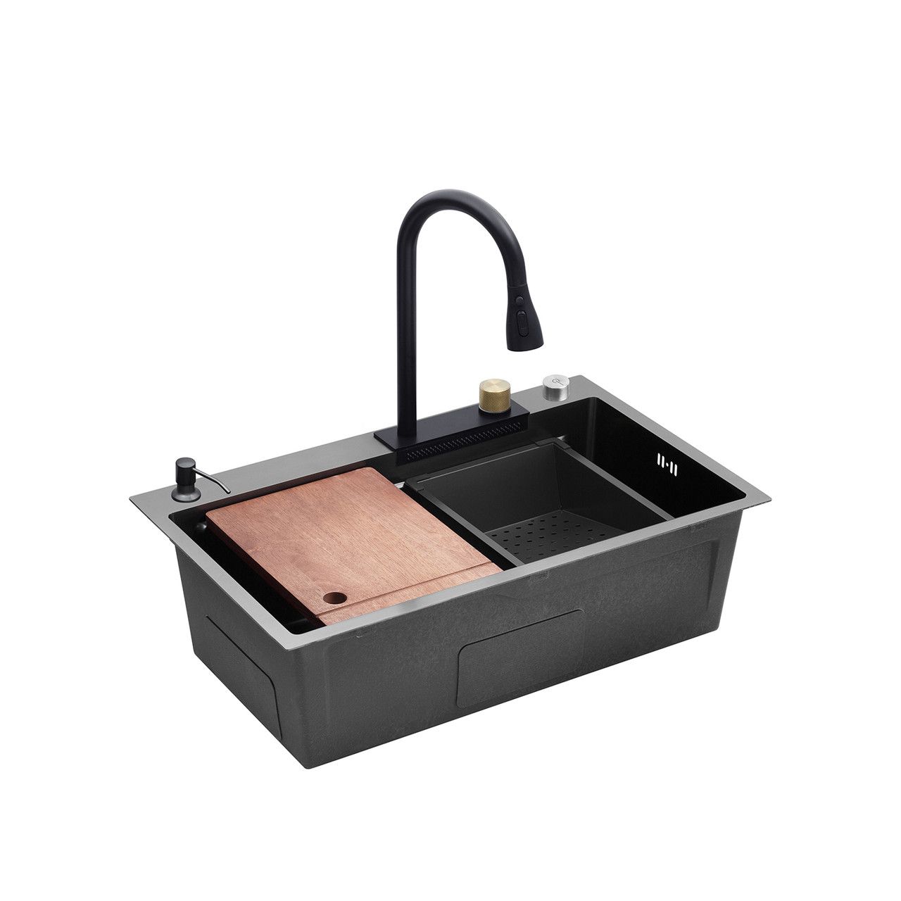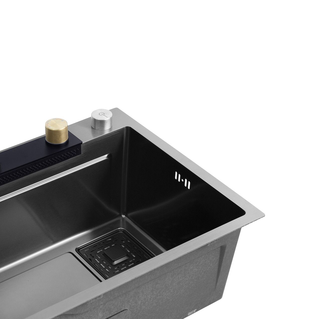 Змішувач з висувним виливом: Має 3 режими та функцію водоспаду. Управління термостатичним картриджем полегшує використання. Ліва сторона керує змішувачем, а права - панеллю з водоспадом. Можна зручно мити фрукти та овочі за допомогою унікального водоспаду.