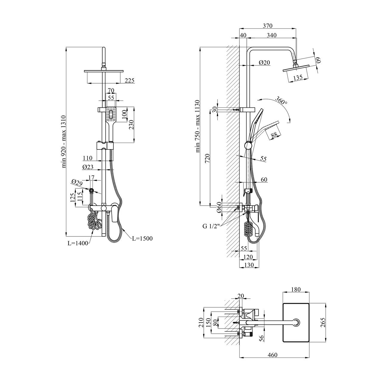 Верхній душ на шарнірі: Можливість повороту верхнього душу на 360 градусів і регулювання кута нахилу забезпечує рівномірне покриття всієї зони душу, створюючи розслаблювальний і комфортний досвід.