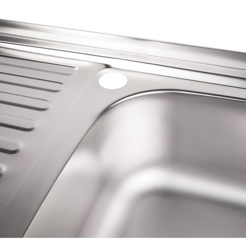 Кухонна мийка Lidz 5080-R 0,8 мм Satin (LIDZ5080RSAT8) виготовлена з неіржавкої сталі харчової марки, тому виріб слугуватиме довгі роки. Також варто зазначити винятковий дизайн, який прикрасить будь-яку кухню. Чудова якість і дизайн мийки дадуть змогу задовольнити найвищі вимоги! Мийка виготовлена з робочою чашею, крилом для сушіння посуду та розморожування продуктів, отвором під змішувач. Монтується накладним способом в отвір у стільниці.