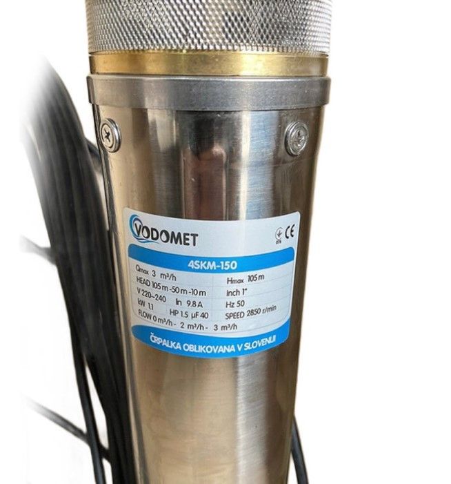 Свердловинний насос VODOMET 4SKM-150 — призначений для подавання чистої води зі свердловин, колодязів і відкритих вод. Можна використовувати насоси цієї серії в системах автономного водопостачання будинків, поливу, дач і малих ферм. Завдяки простоті конструкції, ремонтопридатності за невеликої вартості чудово зарекомендували себе на ринку України.