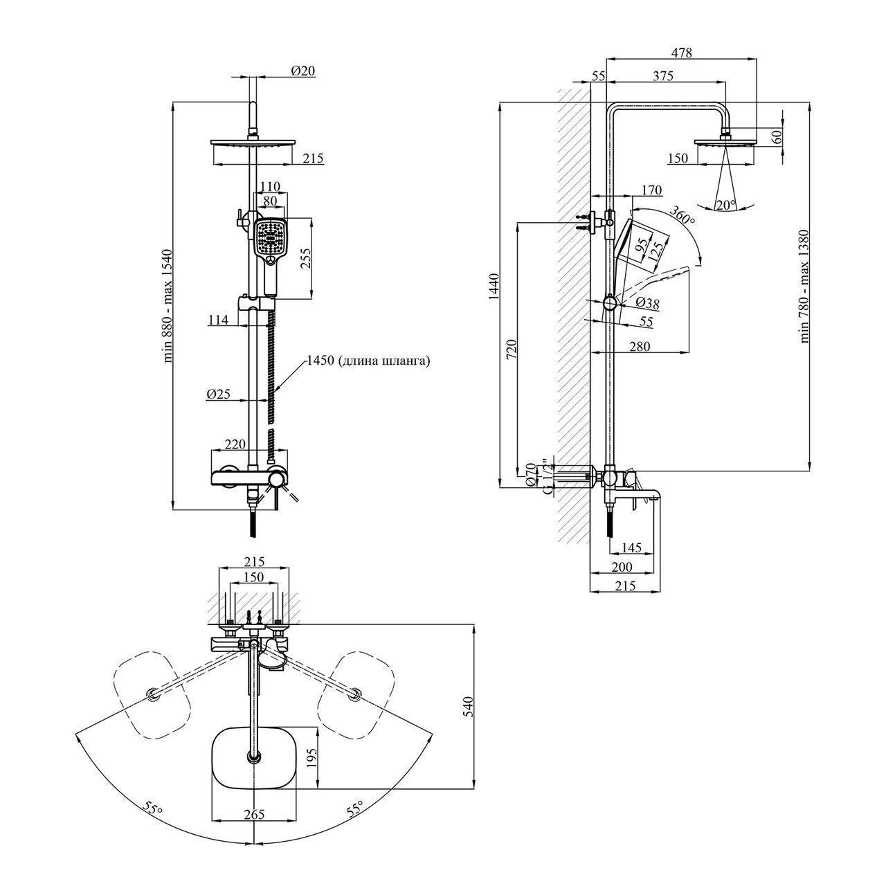 Кількість режимів розпиленняРучной душ: 3. Верхний душ: 1.