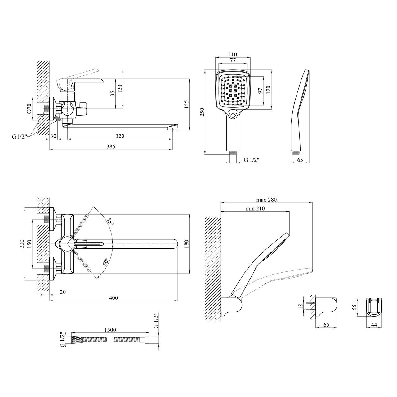 Длина душевого шланга, мм1500