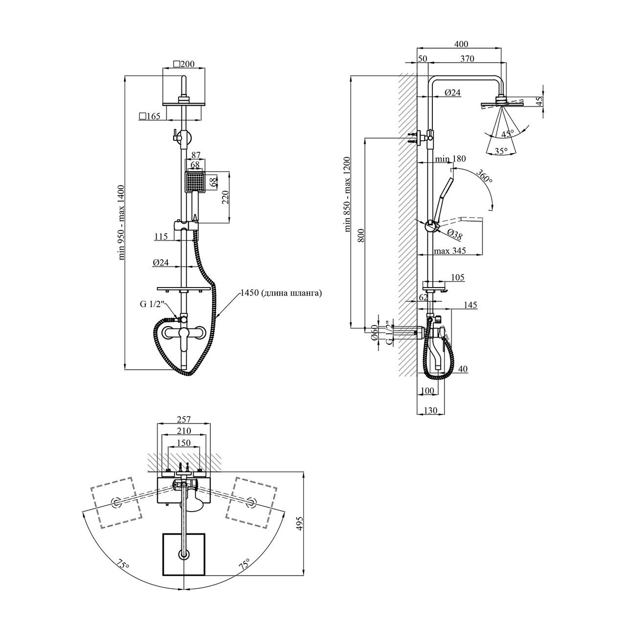 Кількість режимів розпиленняРучной душ: 1. Верхний душ: 1.