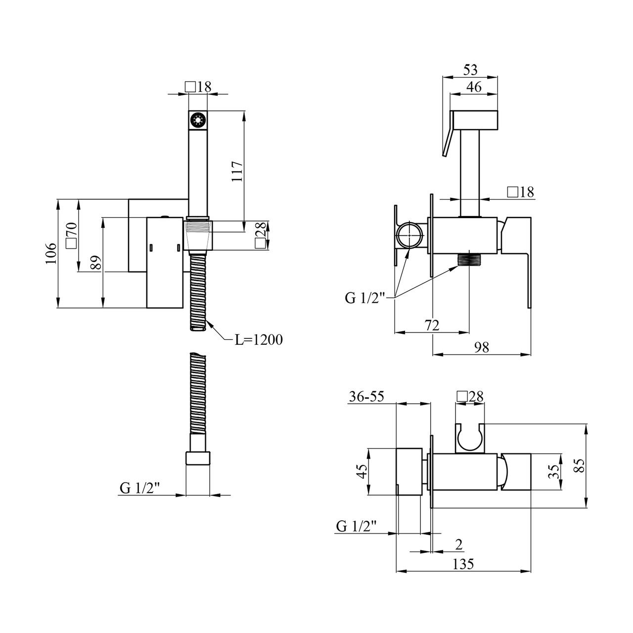 Довжина душового шланга, мм1200