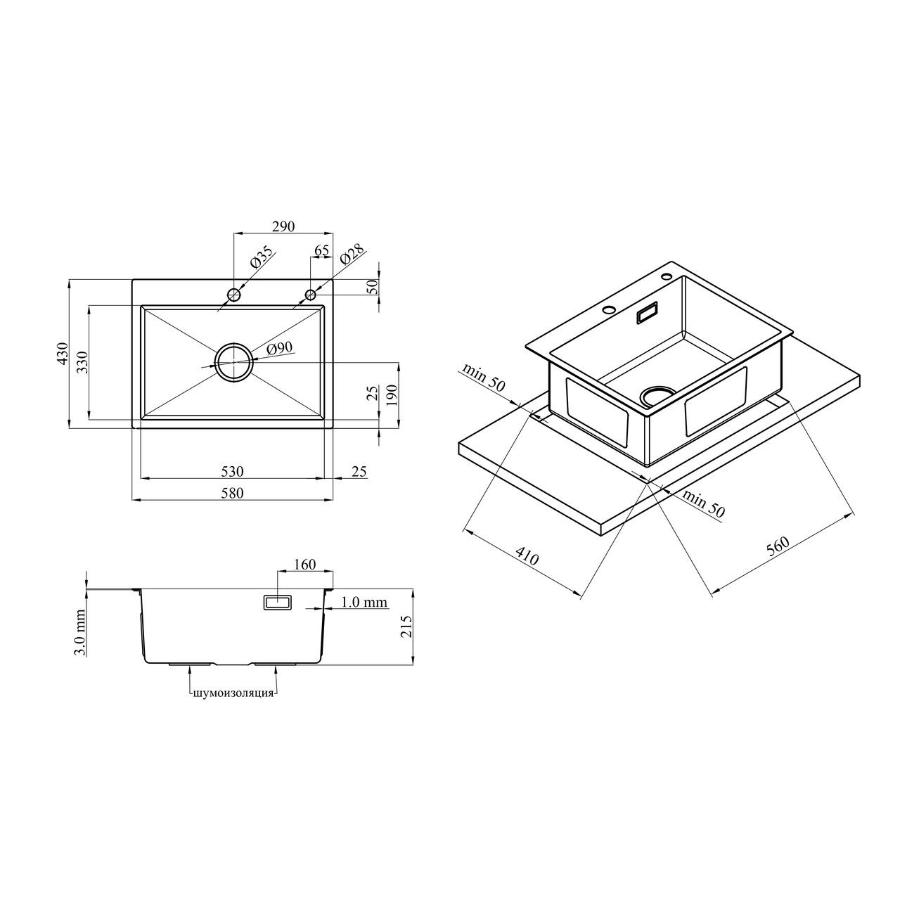 Додаткові функціїНержавіюча сталь SUS 201. Є отвір для дозатора миючого засобу.