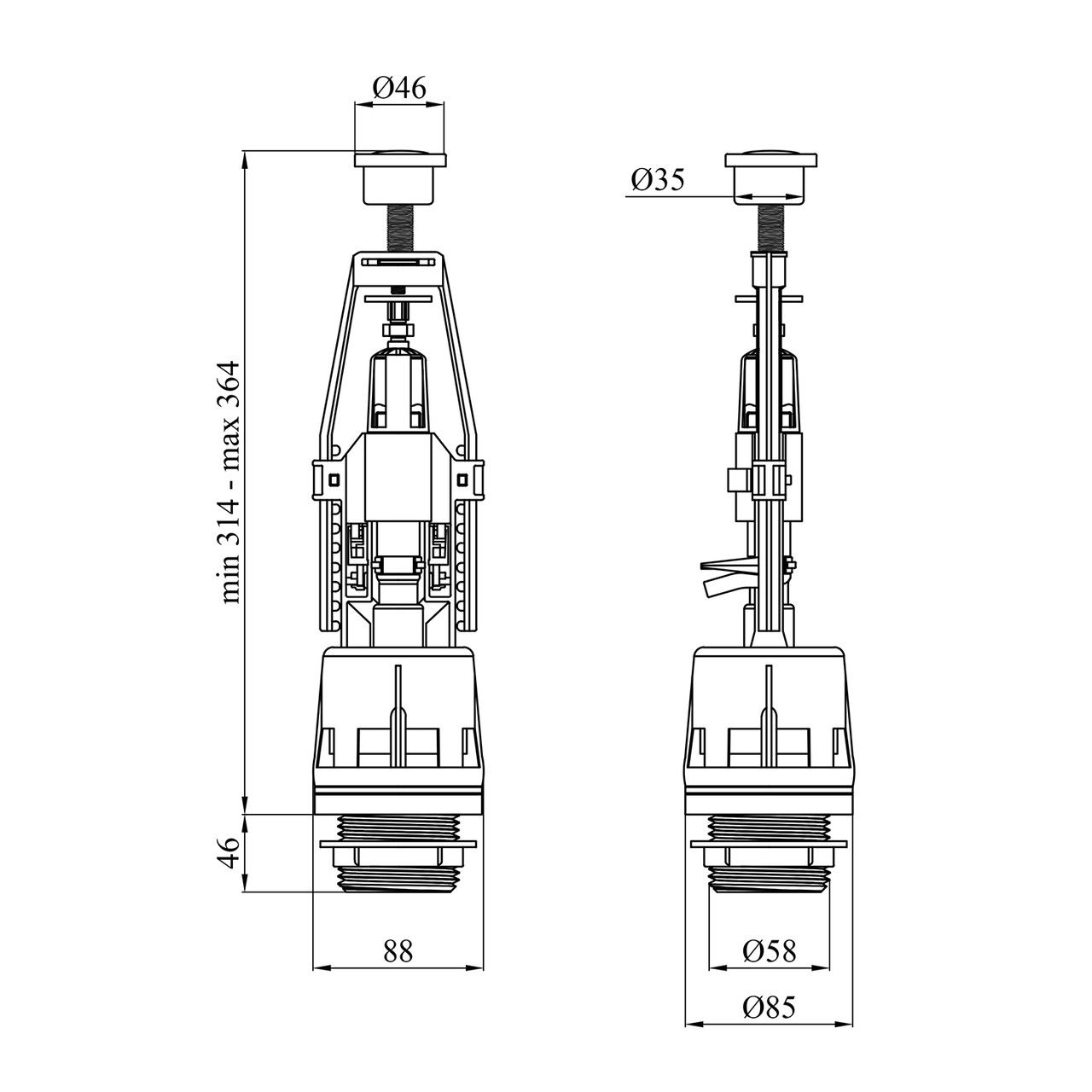 Зливний клапан для бачка унітаза Agua SB04 з одним режимом зливу та хромованою кнопкою. Комплектується двома кільцями з еластичного спіненого ППУ, що забезпечують надійну герметизацію під час встановлення механізму в бачку унітаза. Середня витрата води, що подається з бачка на змивши через арматуру щонайменше 2,5 л/сек. Висота комплектованого бачка з кришкою 330-400 мм.