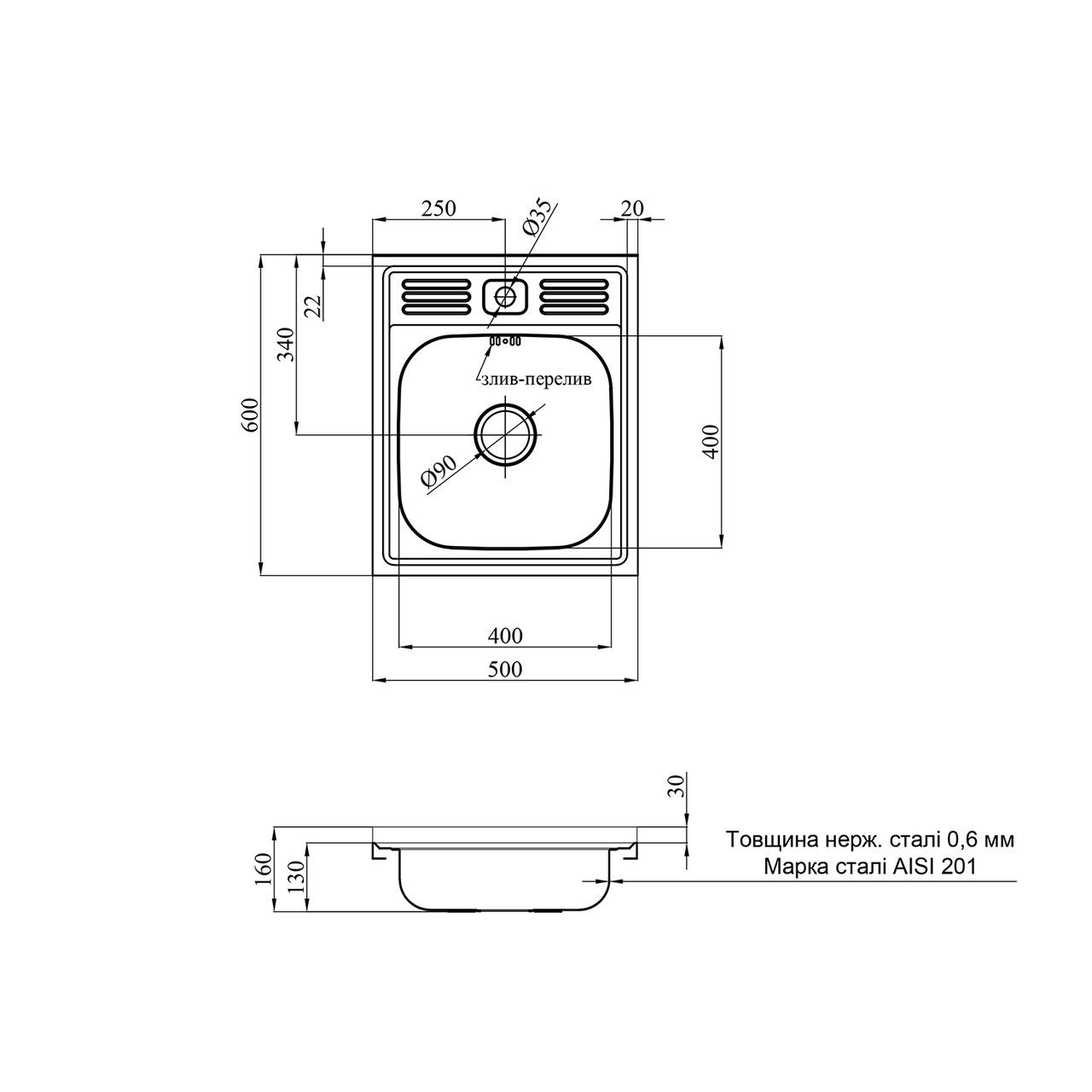 Кухонна мийка накладна Kroner KRP Satin — 6050 (0.6 мм)
