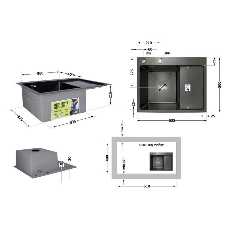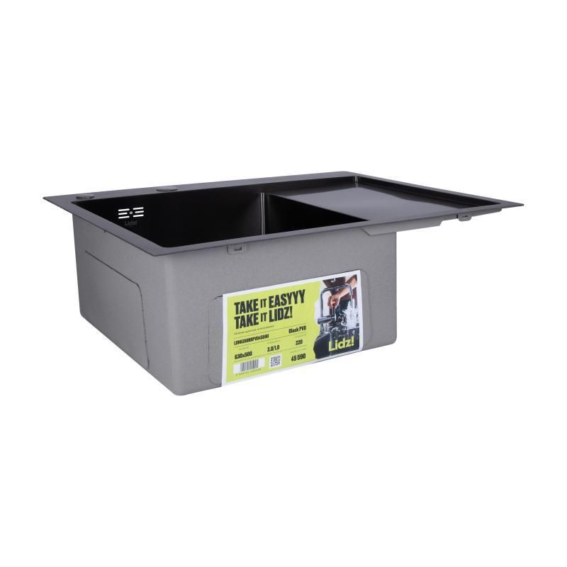 Мийка для кухні з крилом інтегрована права Lidz Handmade H6350BR (LDH6350BRPVD45590) Brushed Black PVD 3,0/1,0 мм
