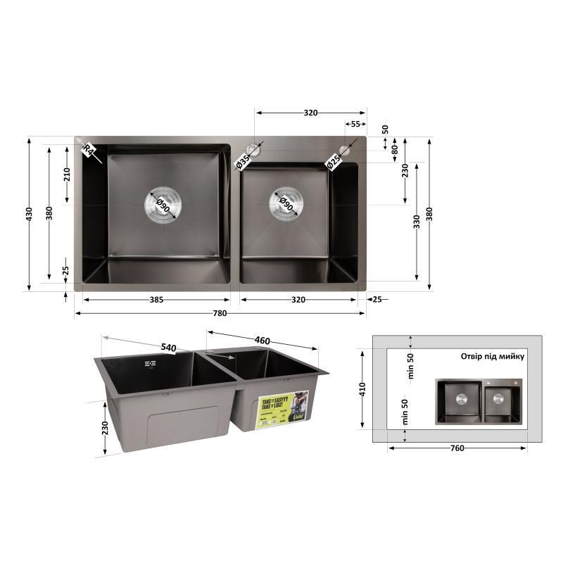 Мийка для кухні Lidz Handmade H7843 з двома чашами та інтегрованою конструкцією в Brushed Black PVD 3,0/1,0 мм являє собою міцне й елегантне рішення для сучасних кухонь. Виконана з високоякісних матеріалів, ця мийка поєднує в собі стиль і функціональність. Ідеальний вибір для тих, хто цінує надійність і естетику в кожній деталі кухонного інтер'єру.
