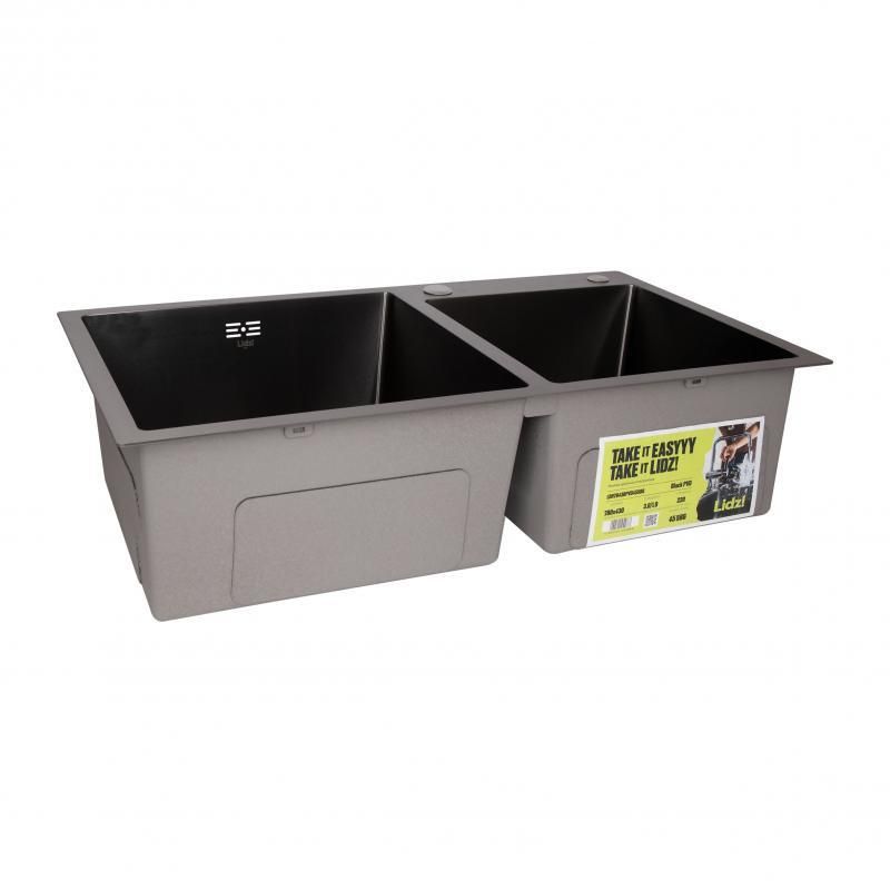 Мийка для кухні з двома чашами інтегрована Lidz Handmade H7843 (LDH7843BPVD45586) Brushed Black PVD 3,0/1,0 мм