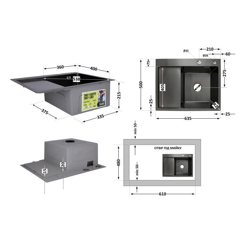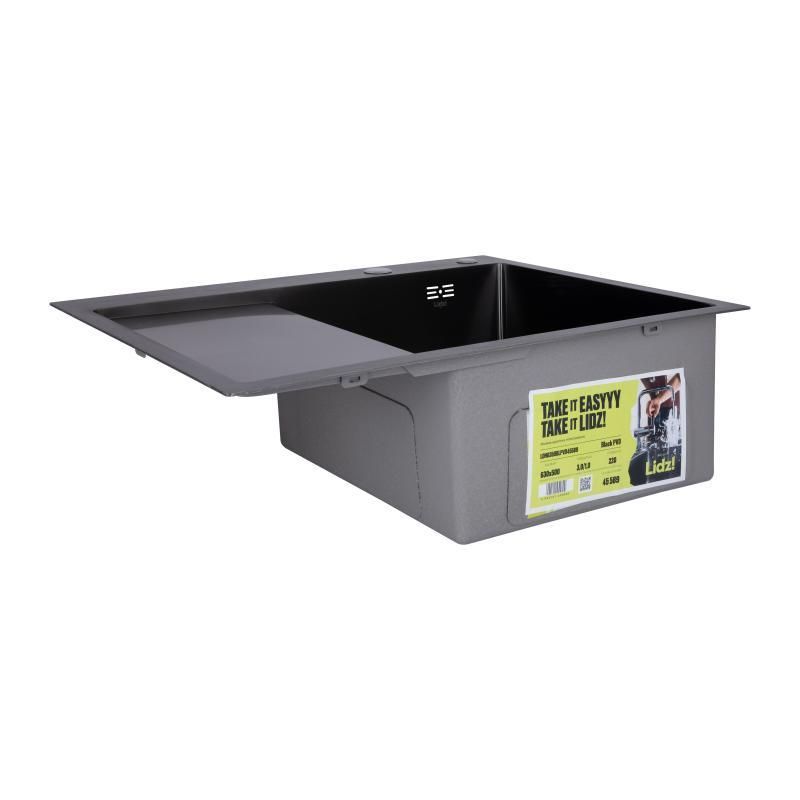 Мийка для кухні інтегрована Lidz Handmade H6350BL крило зліва (LDH6350BRUL45589) Brushed Black PVD 3,0/1,0