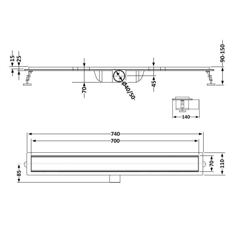 Трап із неіржавкої сталі Qtap Taurus FA700 лінійний із сухим закривом