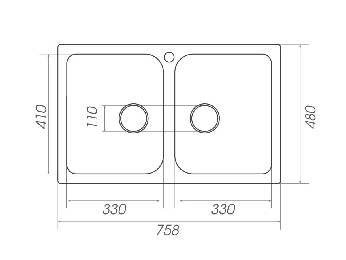 Розміри мийки — 758x480х175 мм, вага — 16.5 кг, сифон — євросифон із широкою горловиною, 110 мм.