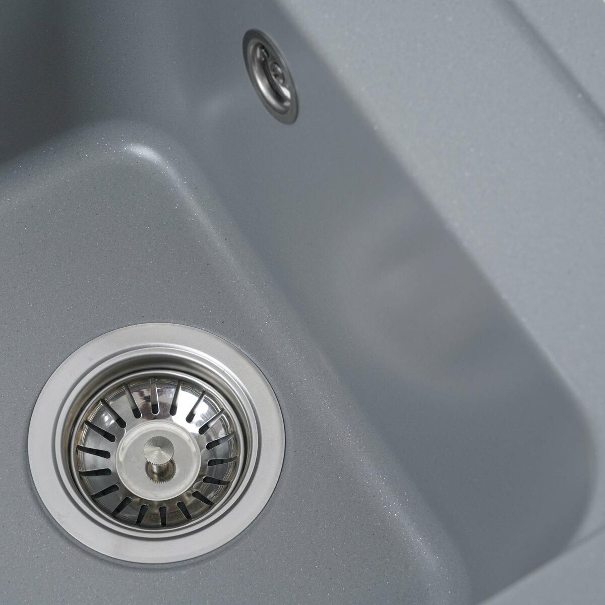 Мийка має матову фактуру та приємний для ока колір — сірий металік, що дає змогу їй легко вписатися в інтер'єр кухні.