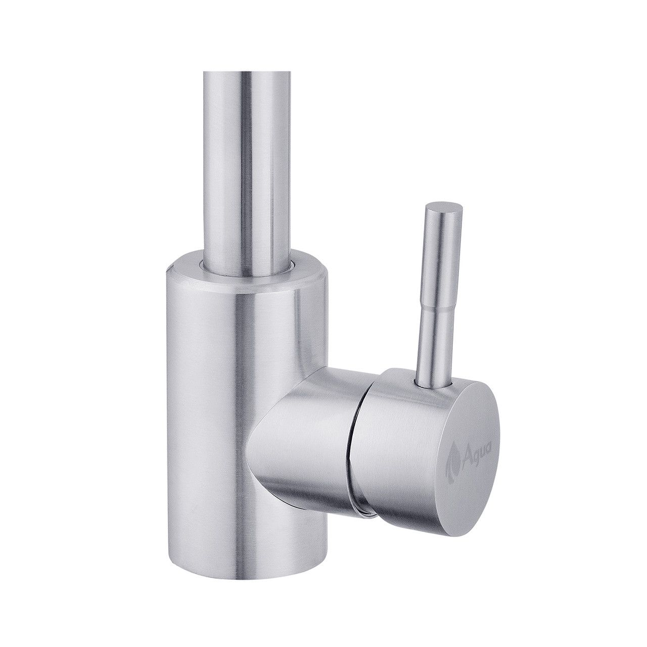 Змішувач для раковини Agua Acero-INOX011 — ідеальний варіант для кухні. Він виготовлений із неіржавкої сталі, що гарантує тривалий термін експлуатації та стильний вигляд. Його брашована поверхня надає особливого шарму та запобігає подряпинам. Механізм змішування з картриджем забезпечує плавне регулювання температури та напору води. Легкий врізний монтаж дасть змогу швидко насолодитися зручністю й елегантністю цього змішувача Agua.