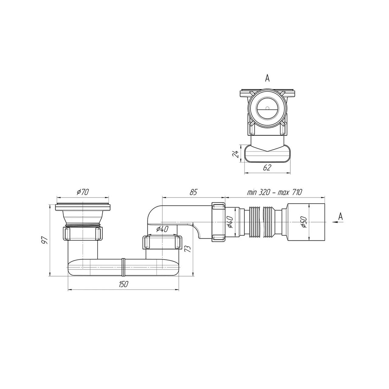 Сифон для душового піддона ANIplast 1 1/2"х40 мм із гнучкою трубою 40х40/50 Е016EU