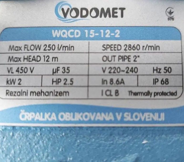 Насос дренажно-фекальний Словенія WQCD15-12-2 з ріжучим ножем
