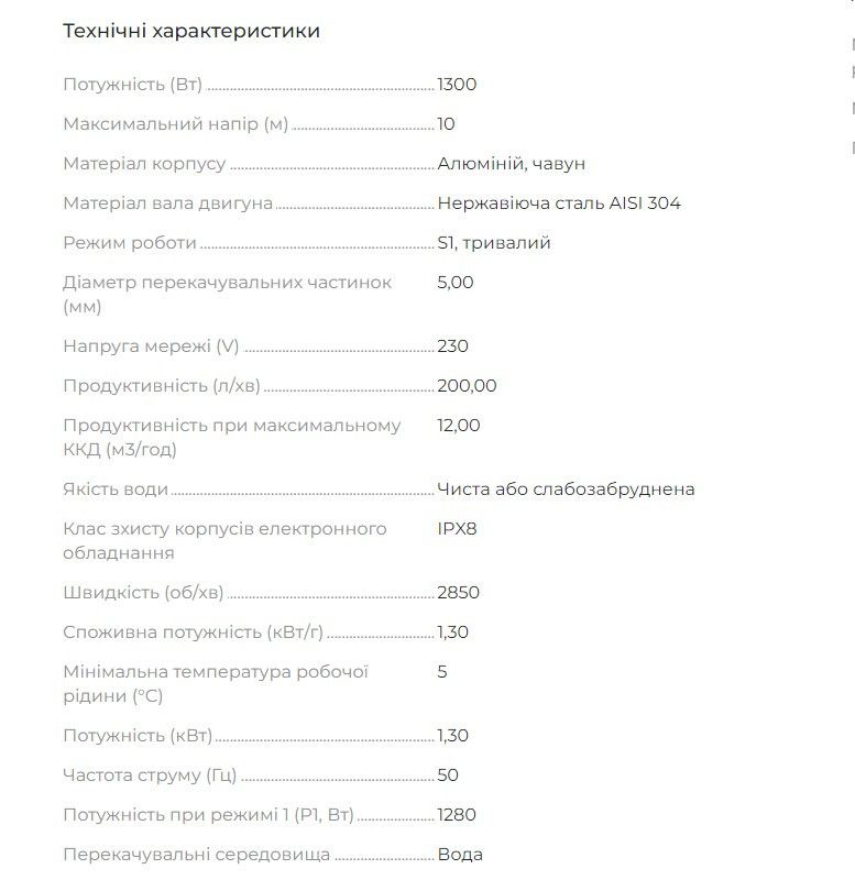 Робоче колесо чавун та вал насоса зроблено з нержавіючої сталі.