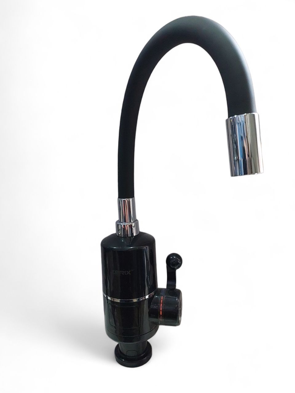 Проточний водонагрівач TM Zerix забезпечить вас гарячою водою за лічені секунди, завдяки вбудованому тену потужність від 3 кВт. Його стильний зовнішній вигляд матиме гармонійний вигляд у будь-якому інтер'єрі. Водонагрівач має цифровий дисплей.