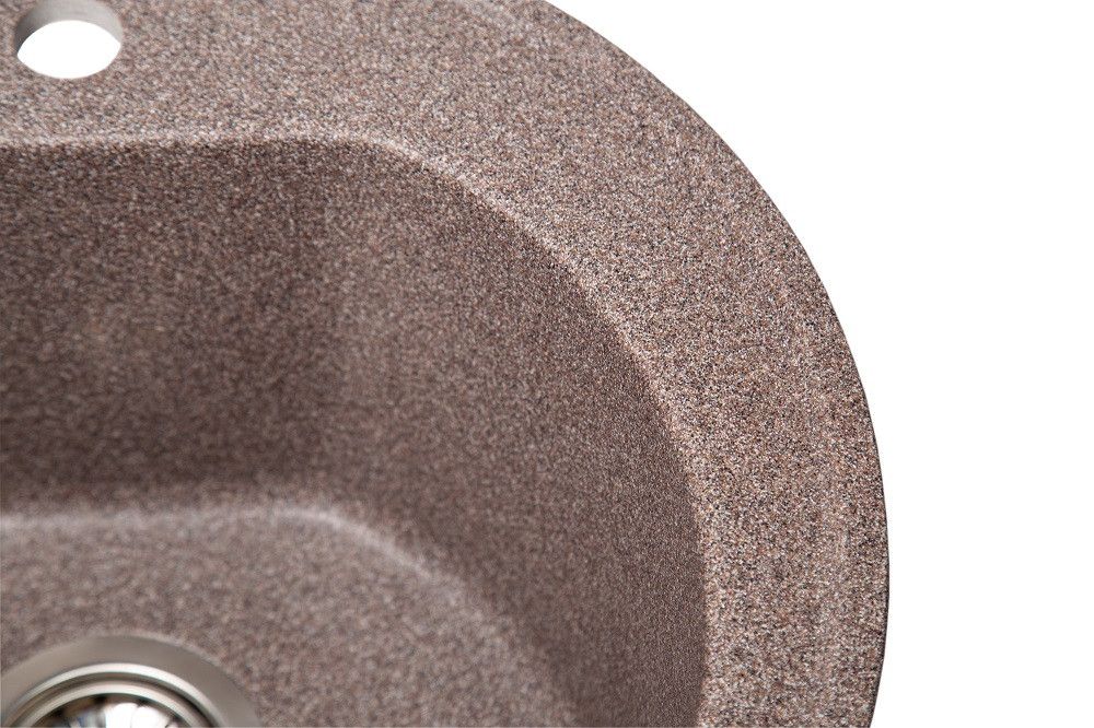 У процесі виробництва мийок Romzha концентрація кварцу на поверхні раковин збільшується, а акрилова смола зменшується. Завдяки цьому всі корисні властивості граніту - а саме стійкість до подряпин і плям - виражаються на передній частині раковини. Саме там, де це потрібно