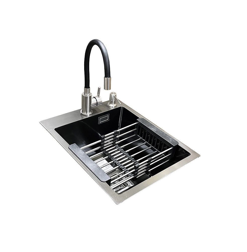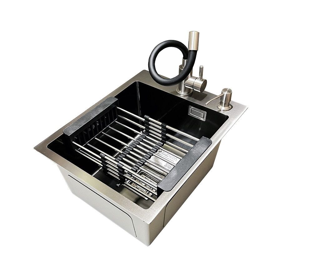 Використовуючи величезний досвід європейських технологів, нам вдалося знайти ідеальний сталевий сплав, який буде служити протягом багатьох років. У той же час, в умовах економічної кризи, завданням було зробити якісний продукт. Ми намагалися зробити високоякісний продукт, який могла дозволити кожна українська родина. Сталева поверхня може бути, матовою, текстурованою та мікродекором. Корозійна стійкість Завдяки кисню, який знаходиться у повітрі, на металевій поверхні утворюється плівка, яка захищає метал від корозії. Ця плівка легко оновлюється у випадках подряпин або інтенсивного зносу поверхні раковини. довговічність Опори в знос, сталь не можна порівняти з будь -яким матеріалом. гігієна На поверхні нержавіючої сталі взагалі немає пори, оскільки вона стійка до забруднення бактерій і легко очищається. теплостійкість витримує температуру з нержавіючої сталі до 1450 ° С і стійкі до температурних відмінностей. Гарячі страви та каструлі не пошкоджують поверхню. 10 років офіційной гарантії Характеристики мийки: Розмір: 500 х 400 мм Глибина чашки: 230 мм Товщина металу: 3.0 / 1.2 мм Тип покриття: Сталь спрямованого шліфування Комплектація: кухонна мийка, сифон, армованний гофро-шланг, корзина з нержавіючої сталі, дозатор та змішувач Romzha Flex BL Характеристика змішувача: Призначення: Кухонний Матеріал корпусу: Нержавіюча сталь Вид монтажу: Врізний Вид змішувача: Одноважільний Довжина виливу: 21 см Висота: 25 см Тип виливу: Поворотний/Гнучкий Тип кріплення: гайка