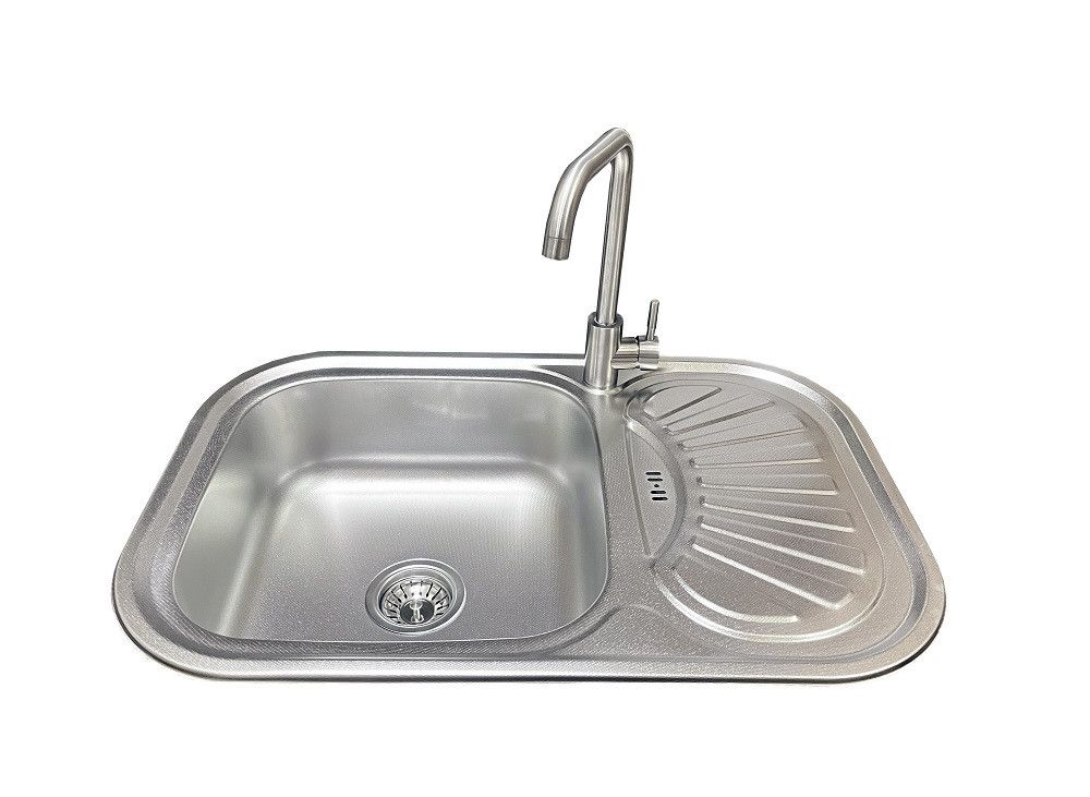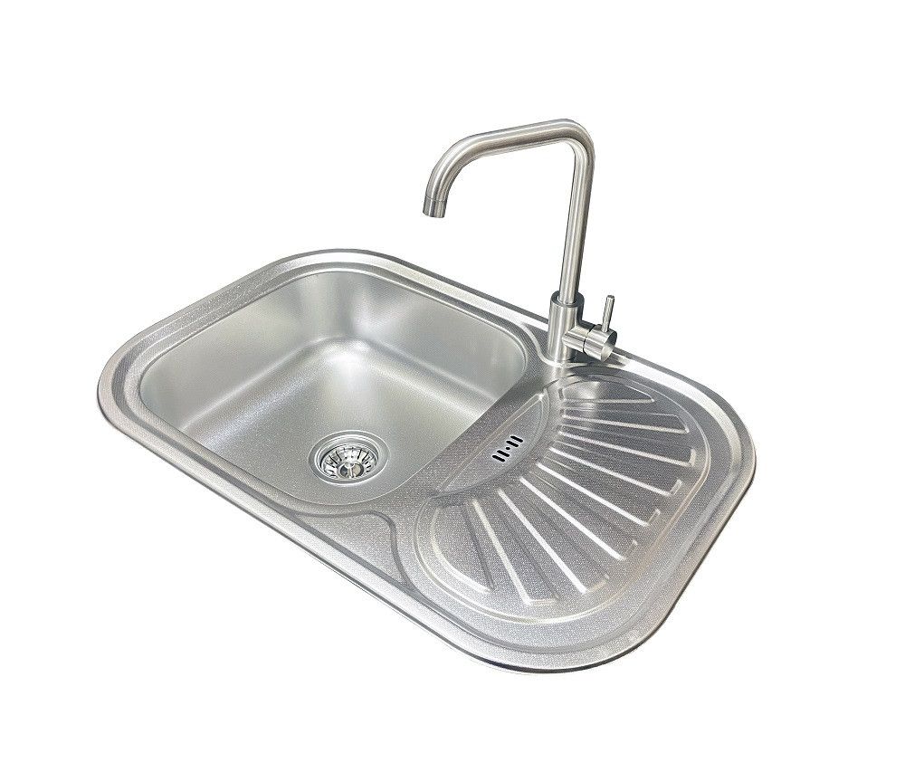 Використовуючи величезний досвід європейських технологів, нам вдалося знайти ідеальний сталевий сплав, який буде служити протягом багатьох років. У той же час, в умовах економічної кризи, завданням було зробити якісний продукт. Ми намагалися зробити дуже високоякісний продукт, який могла дозволити кожна українська родина. ... 4 Сталева поверхня може бути, матовою, текстурованою та мікродекором. Корозійна стійкість Завдяки кисню, який знаходиться у повітрі, на металевій поверхні утворюється плівка, яка захищає метал від корозії. Ця плівка легко оновлюється у випадках подряпин або інтенсивного зносу поверхні раковини. довговічність Опори в знос, сталь не можна порівняти з будь -яким матеріалом. гігієна На поверхні нержавіючої сталі взагалі немає пори, оскільки вона стійка до забруднення бактерій і легко очищається. теплостійкість витримує температуру з нержавіючої сталі до 1450 ° С і стійкі до температурних відмінностей. Гарячі страви та каструлі не пошкоджують поверхню. Характеристики: Розмір: 750 х 490 мм Глибина чаші: 180 мм Товщина металу: 0,8 мм Тип покриття: текстурована (рифлена) Комплектація: кухонна мийка, армування злив, гофри, кріплення для встановлення та ущільнення та змішувач Marian U Виробник країни: Туреччина Характеристика змішувача: Призначення: Кухонний Матеріал корпусу: Нержавіюча сталь Вид монтажу: Врізний Вид змішувача: Одноважільний Довжина виливу: 21 см Висота: 25 см Тип виливу: Поворотний Тип кріплення: гайка