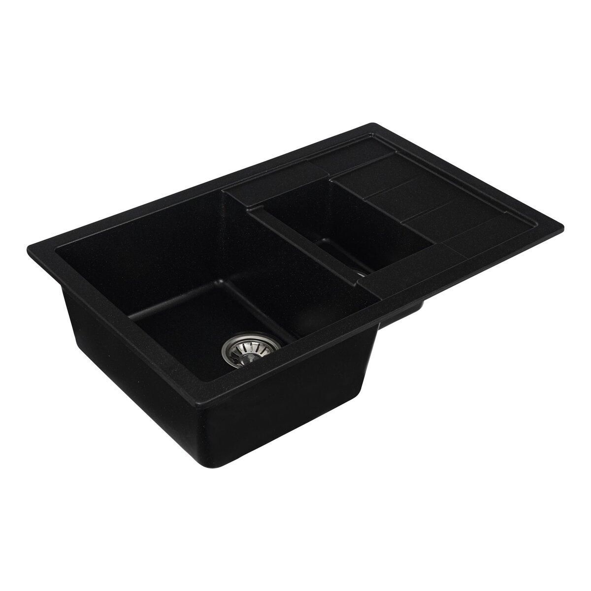 Гранітна мийка для кухні Platinum 7850W TOSKANA матова Чорний металік