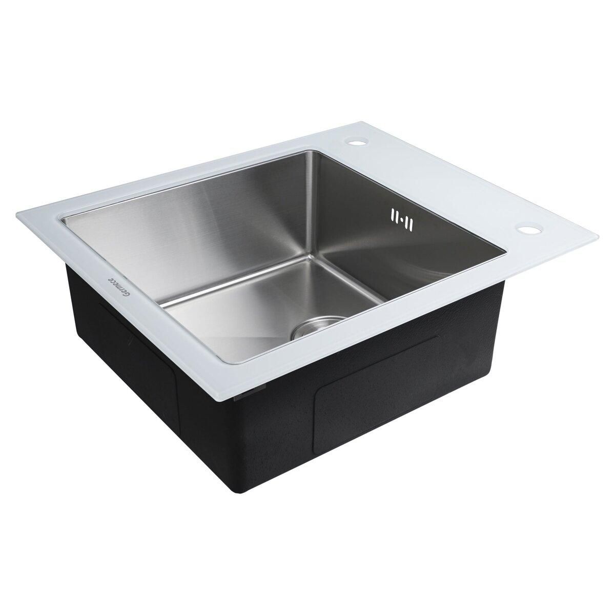Мийка кухонна WHITE GLASS Handmade 600х510х200