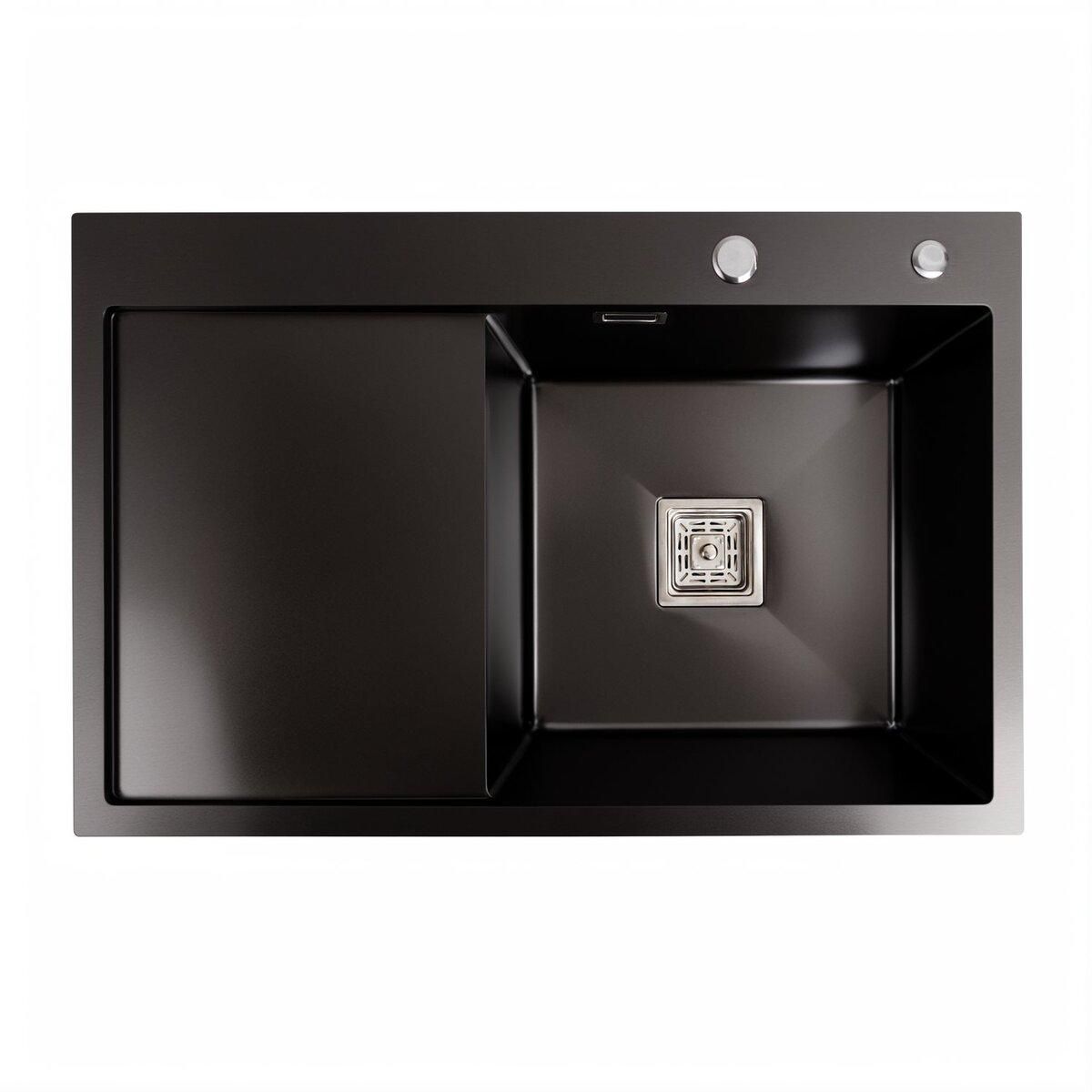 Вітайте у світі стильних і практичних рішень для вашої кухні! Представляємо вам кухонну мийку Platinum Handmade 78*50В R PVD у чорному кольорі.