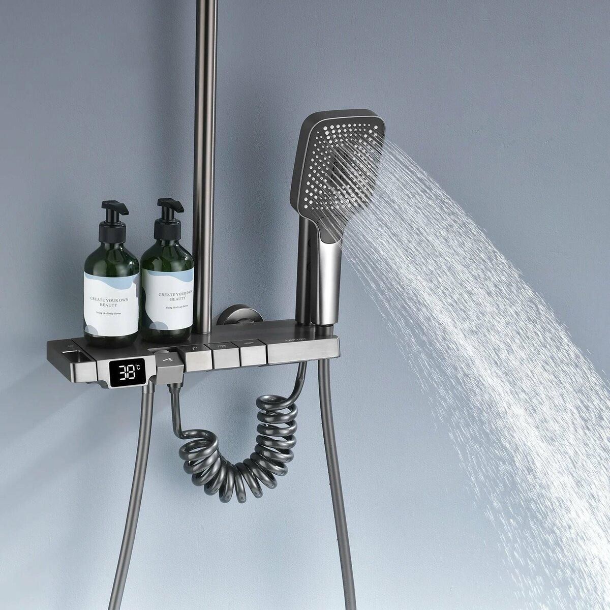 - 4-в-1 функціональність: Ця душова колона поєднує в собі дощовий душ, ручний душ, розпилювач і потік води для різних потреб і насолоди водними процедурами.