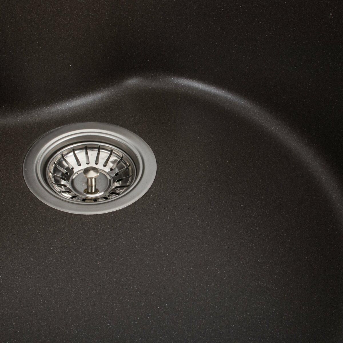 Мийка має матову фактуру та приємний для ока колір — темна скеля, що дає змогу їй легко вписатися в інтер'єр кухні.